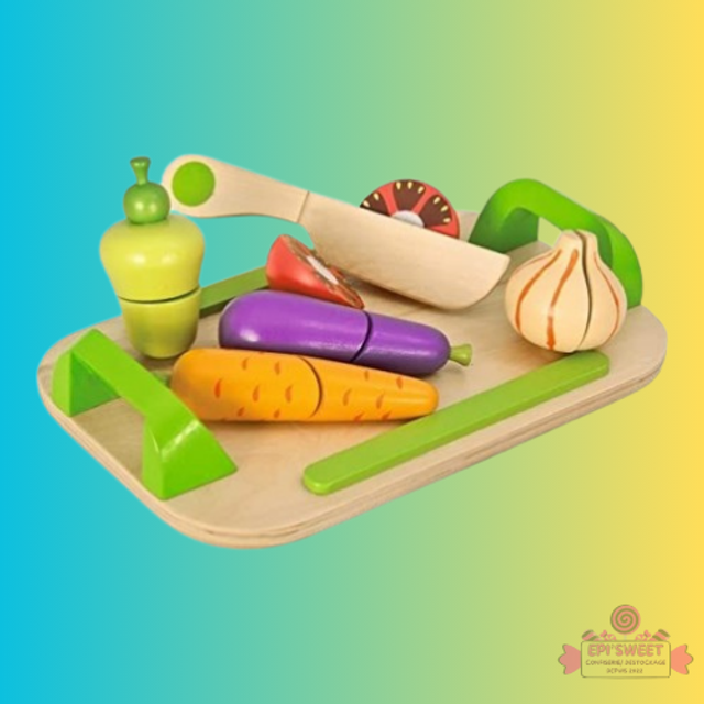 Pour faire comme les grands, la planche et ses légumes à découper.